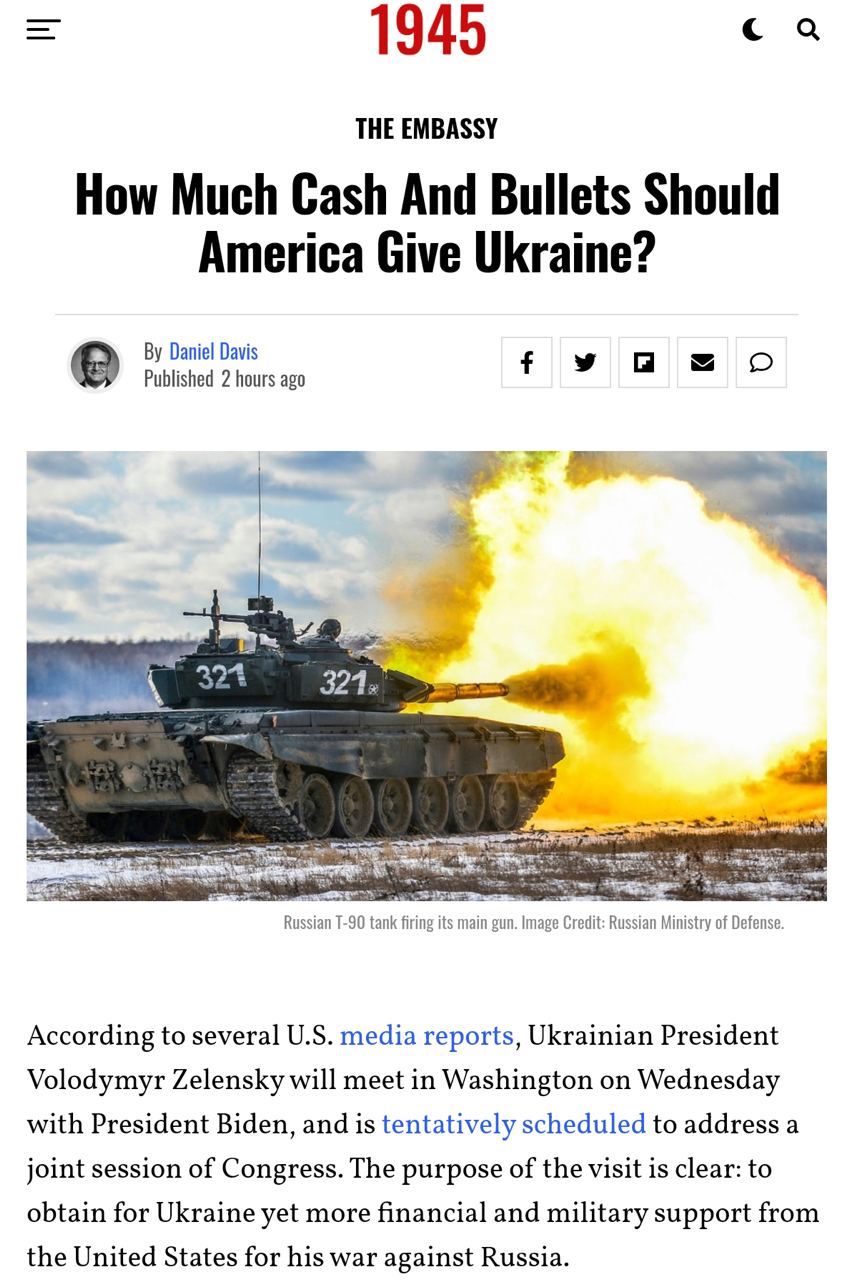 С начала 2022 года Соединённые Штаты и без того оказали Киеву больше финансовой и военной поддержки, чем любой другой стране мира. Прежде чем президент и конгресс войдут в раж и раздадут все деньги американских налогоплательщиков, от Белого дома нужно потребовать чётко сформулированного объяснения связи этого конфликта с национальными интересами Америки»,