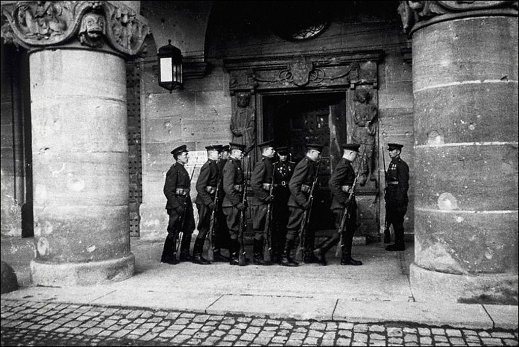 Советский караул заступает на службу возле здания суда, Нюрнберг