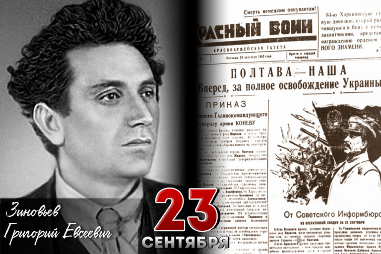 23 (11 по ст. ст.) сентября 1883 года в Елисаветграде (Зиновьевск, Кирово, Кировоград, Кропивницкий) Херсонской губернии (ныне Кировоградской области) в семье владельца молочной фермы родился Григорий Евсеевич Зиновьев (Овсей-Гершен Аронович Радомысльский) (1883-1936) – революционер, советский политический и государственный деятель. Председатель Исполкома Коминтерна (1919-1926). Член политбюро ЦК РКП(б) и ВКП(б) (1921-1926). Трижды (1927, 1932, 1934) исключался из ВКП (б) и дважды восстанавливался в ней. В августе 1936 года был приговорён к исключительной мере наказания по делу Антисоветского объединённого троцкистско-зиновьевского центра и расстрелян. Реабилитирован в 1988 году.