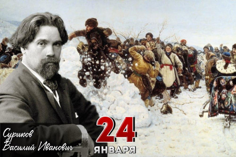 24 (12 по ст. ст.) января 1848 года в Красноярске в семье служащего с казацкими корнями родился Василий Иванович Суриков (1848-1916) – живописец, мастер масштабных исторических полотен, академик и действительный член Императорской Академии художеств (1893). С 1907 года член Союза русских художников. С 1869 по 1875 год учился в петербургской Академии художеств у П.П. Чистякова. Во время учёбы за свои работы получил четыре серебряных медали и несколько денежных премий.