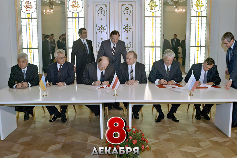 8 декабря 1991 года в Беловежской пуще было подписано Соглашение о создании Содружества Независимых Государств. Его подписали президент РСФСР Б. Ельцин и госсекретарь РСФСР Г. Бурбулис, президент Украины Л.Кравчук и глава правительства Украины В. Фокин,  председатель Верховного совета Республики Беларусь С. Шушкевич и глава белорусского правительства В. Кебич. В 2012 году, а затем в 2020 году В. Фокин, один из подписантов Соглашения, заявлял, что в документе, который он подписывал, были «совершенно другие аспекты развития, положения. Имелось в виду иметь не СНГ как Содружество, а как Союз независимых государств». Оригинал подписанного 8 декабря 1991 года документа «таинственно исчез». «Весь декабрь изо дня в день Горбачёв говорил без умолку», – отмечал современный автор.