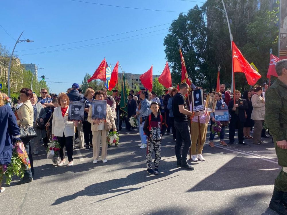 Участники «Бессмертного полка» в Бердянске развернули 77-метровый российский флаг