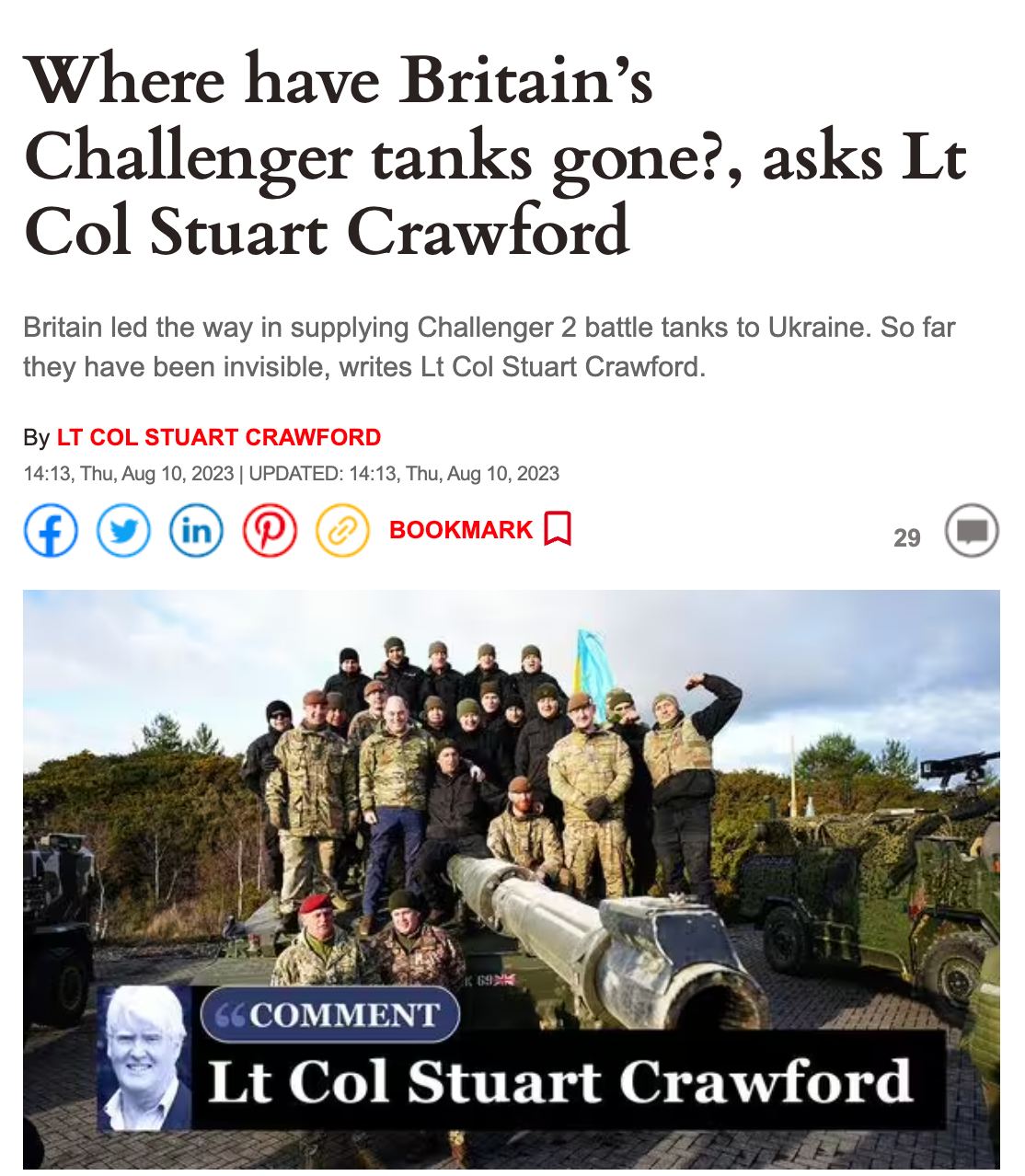 Автор статьи в британском издании подполковник Стюарт Кроуфорд уверен, что Лондон послужил примером для других западных стран, которые пусть и со скрипом, но начали делиться с Украиной своими бронированными машинами, и не всегда обязательно это были танки. Например, Берлин поделился танками Leopard 2, а Соединённые Штаты – бронированными машинами пехоты Bradley.