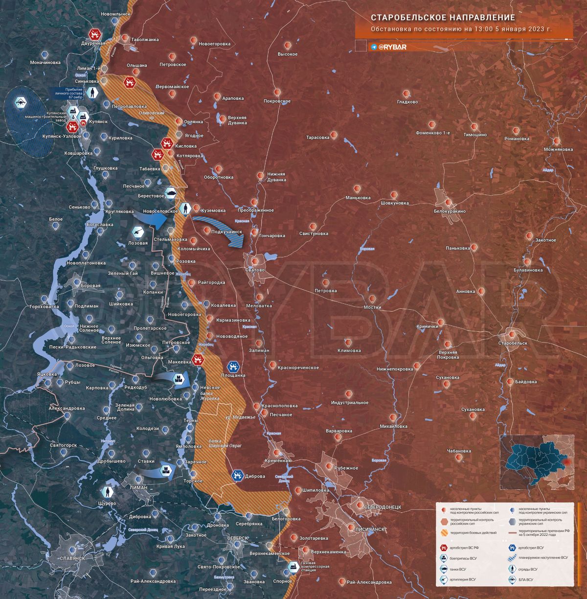 Анализ ситуации на Старобельском направлении на 5 января 2023 года от Телеграм-канала «Рыбарь»: