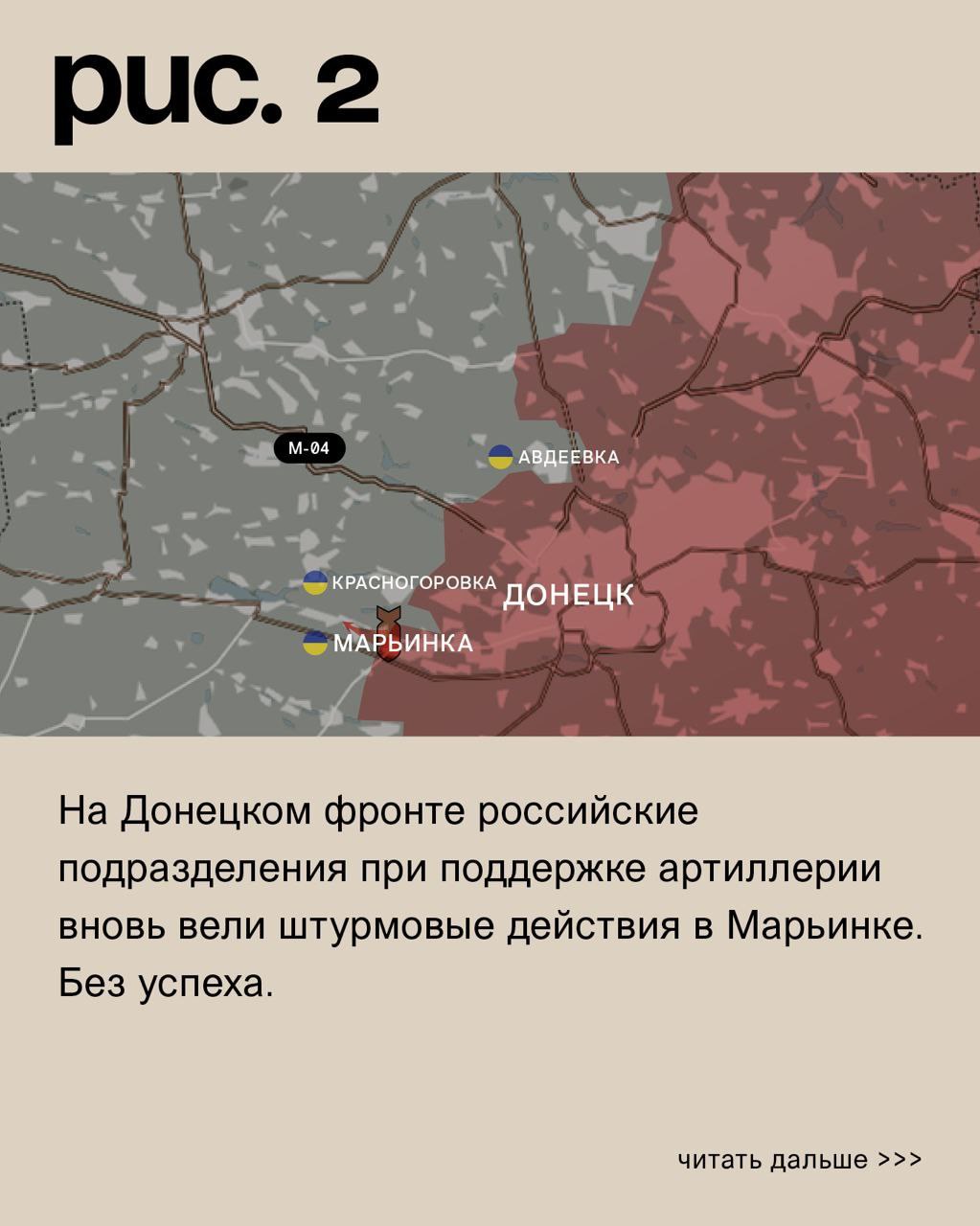 На ДОНЕЦКОМ фронте российские подразделения при поддержке артиллерии вновь вели штурмовые действия в МАРЬИНКЕ. Без успеха.