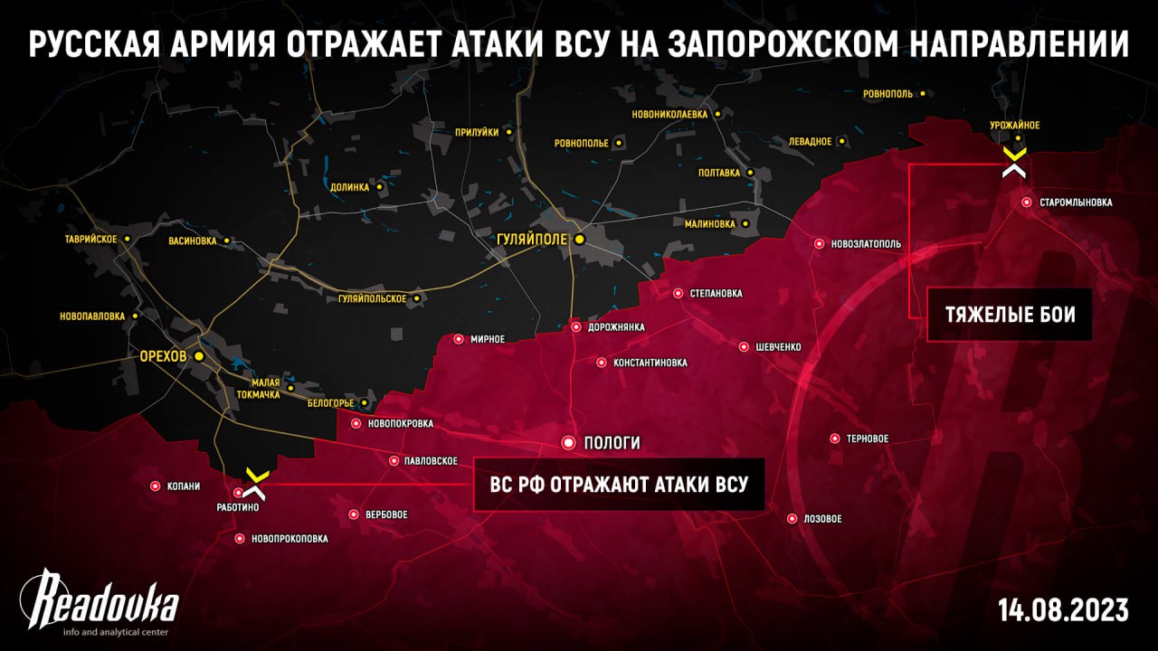 Фронтовая сводка на утро 14 августа от Телеграм-канала WarGonzo.