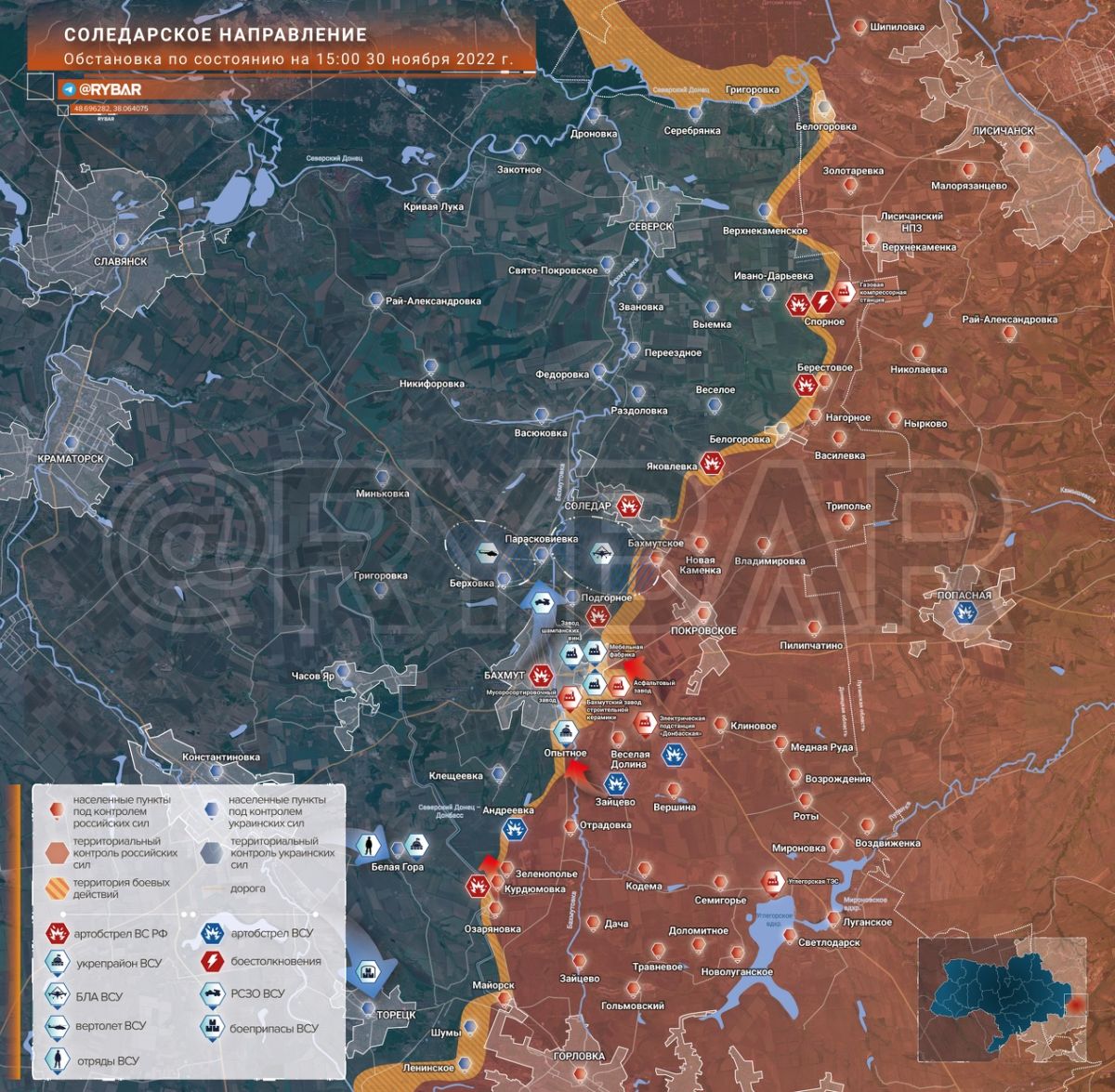 Анализ ситуации на Соледарском направлении на вторую половину дня 30 ноября от Telegram-канала Рыбарь.