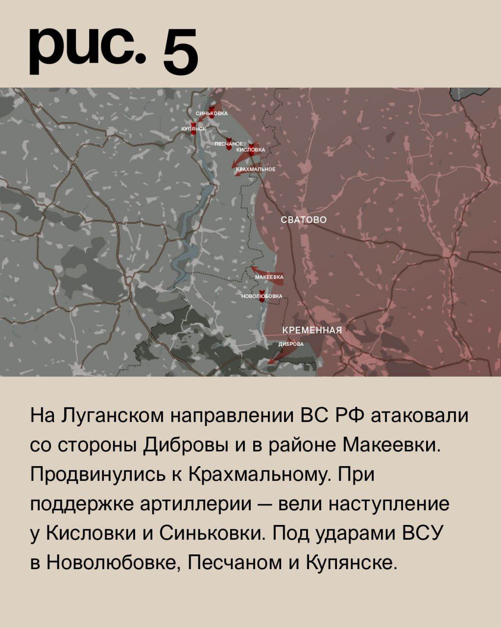 Чуть севернее Кременной пехота вклинилась на 600 м в оборону ВСУ на участке в 1 км по фронту.