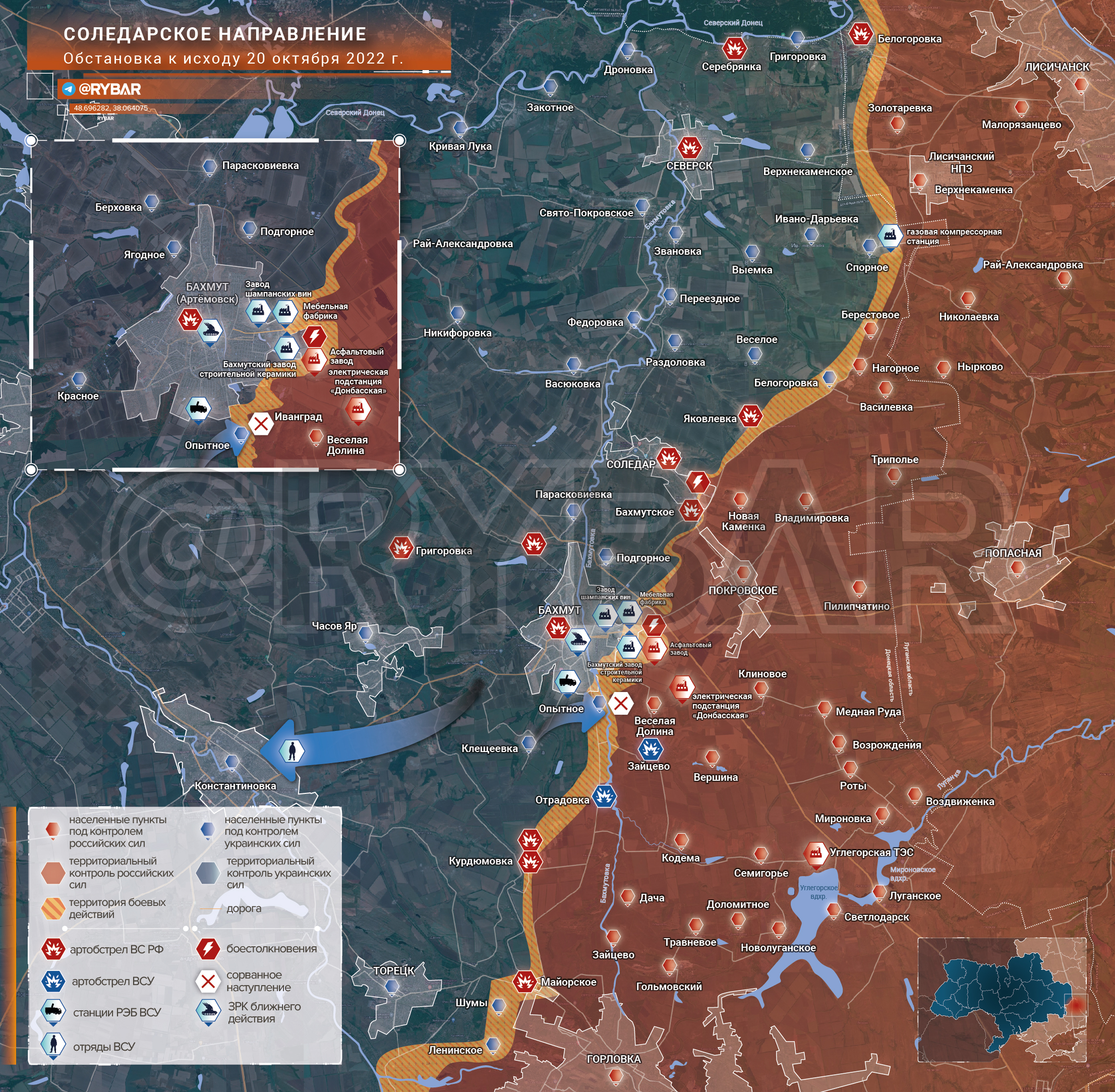 Telegram-канал Rybar пишет об обстановке на СОЛЕДАРСКОМ направлении.