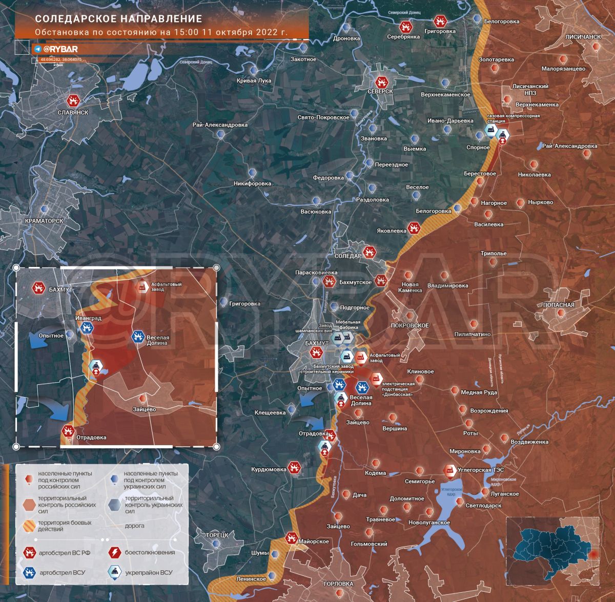 Обстановка на Соледарском направлении по состоянию на 15.00 11 октября 2022 года – разбор Telegram-канала Rybar.