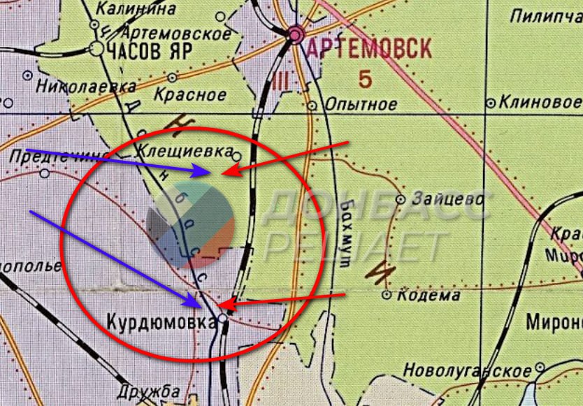 К югу от города продолжаются бои на линии Клещеевка – Андреевка – Курдюмовка. Прорваться через железнодорожные пути противник не может. Установить полный контроль над Клещеевкой и Андреевкой, ворваться в Курдюмовку также не может.