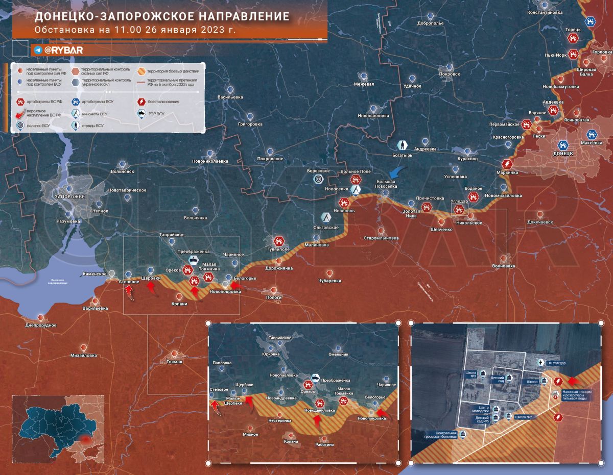 Анализ ситуации на Донецком направлении от Телеграм-канала «Рыбарь» на 26 января 2023 года.