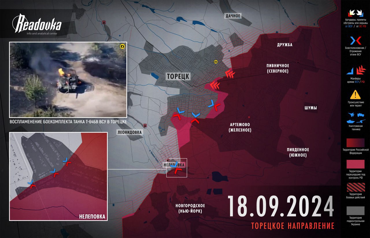 Донбасский фронт: ВС РФ прорвались в центр Торецка и продолжают наступление