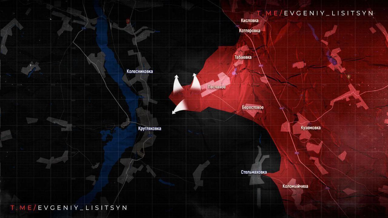 На Купянском направлении наши ВКС поразили очередную переправу противника в районе Купянска-Узлового. Также продолжается продвижение ВС РФ в районе Песчаного, где за минувшие сутки мы стали ещё ближе к реке Оскол почти на полкилометра.
