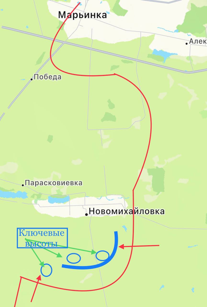 В целом, это направление очень важно тем, что именно тут находятся важнейшие высоты, по которым выстроена линия обороны ВСУ. В случае их взятия ВС России смогут установить огневой контроль над всеми окрестностями, существенно затруднить положение гарнизона и в перспективе взять Новомихайловку. В свою очередь, это позволит успешнее развивать операции на южном фланге Марьинки. Так что, продвижение здесь необходимо и целесообразно. Ожидаем уточнения информации, сообщает канал «Вести с фронта 2023».