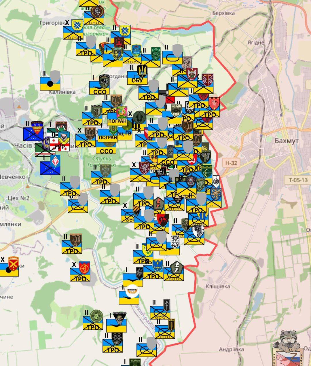 Военкор Тимофей Ермаков сообщает о сильнейшем бое на южном фланге Артёмовского участка фронта. Артиллерия нацистов работает без остановки, наши активно отвечают, беспрерывно работает русская авиация. Местами бой перерос в ближний стрелковый.