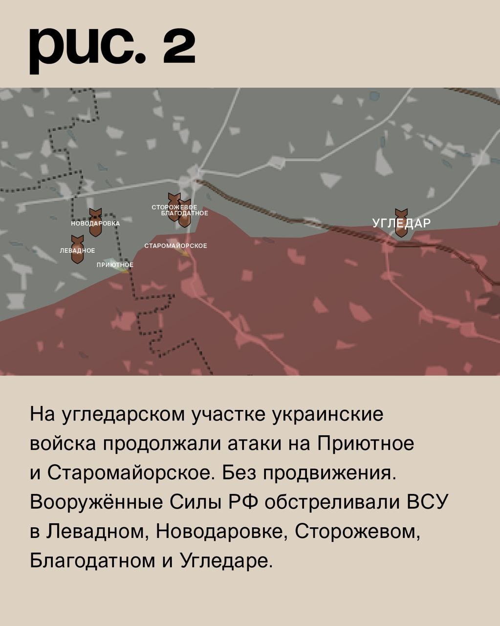 – на Угледарском направлении продвижение составило 600 м, что в положении неудобных складок местности является очень неплохим результатом. Сообщают, что затрудняющая наше продвижение высота буквально стёрта с лица земли.