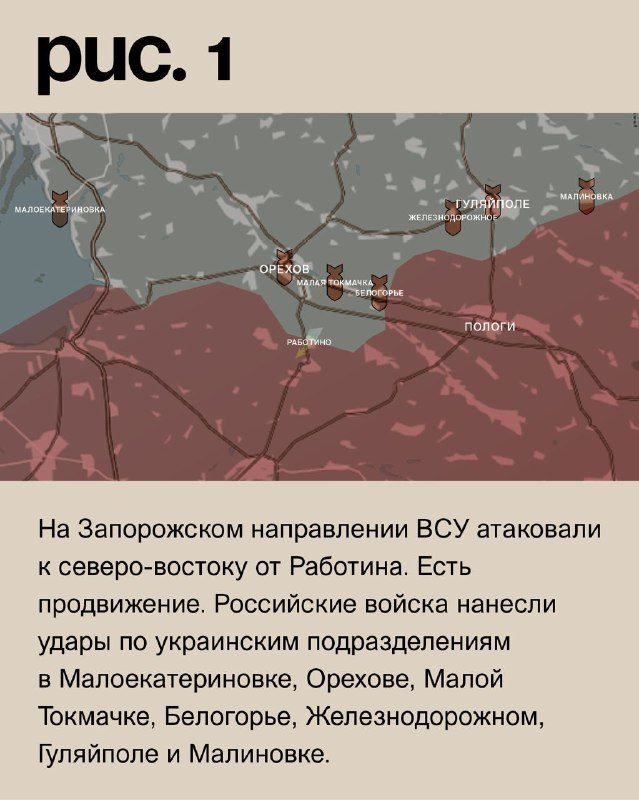 На ЗАПОРОЖСКОМ направлении ВСУ атаковали к северо-востоку от РАБОТИНО. Есть продвижение.
