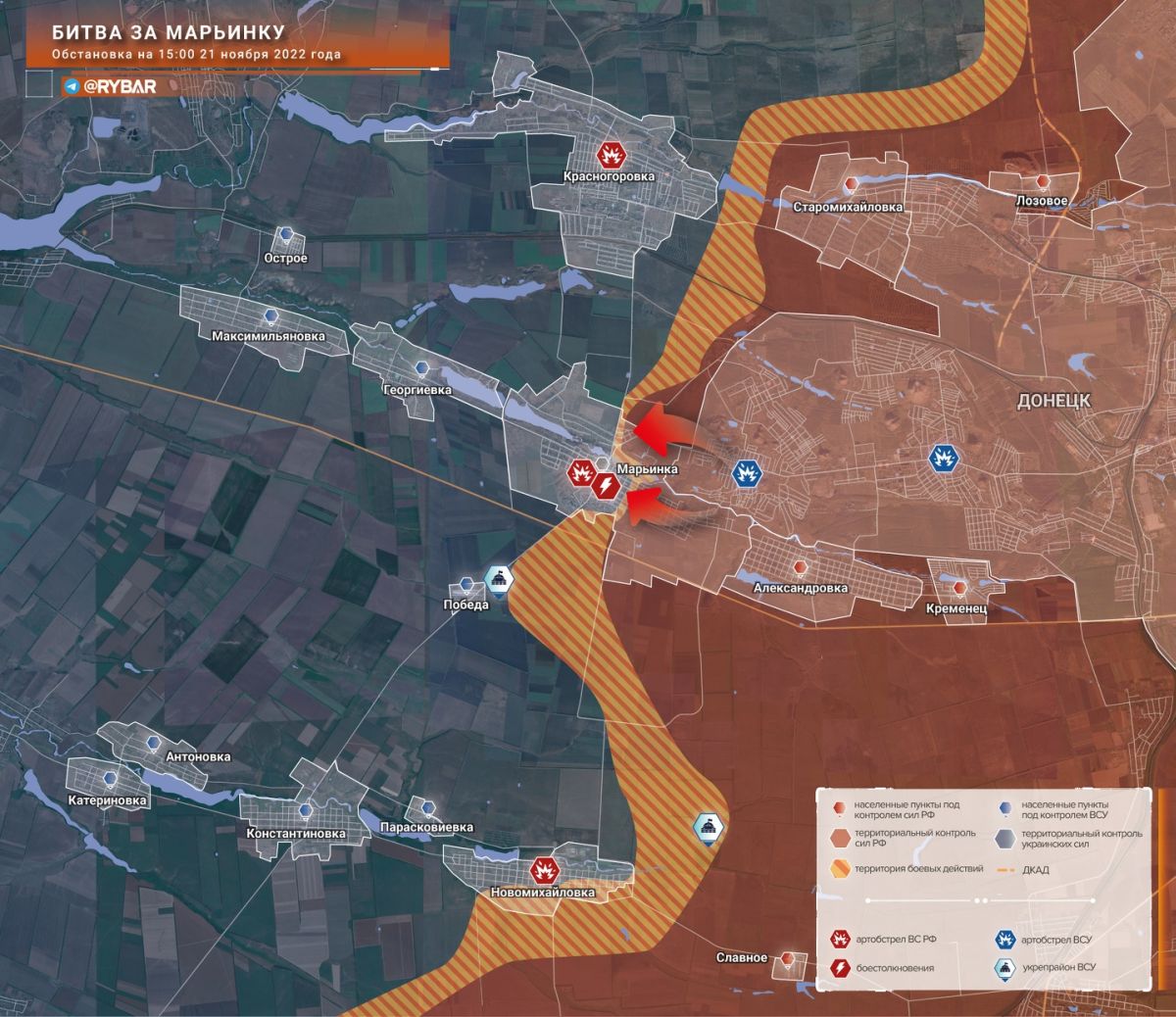 Битва за МАРЬИНКУ. О ситуации под МАРЬИНКОЙ на 21 ноября сообщает Telegram-канал Рыбарь.