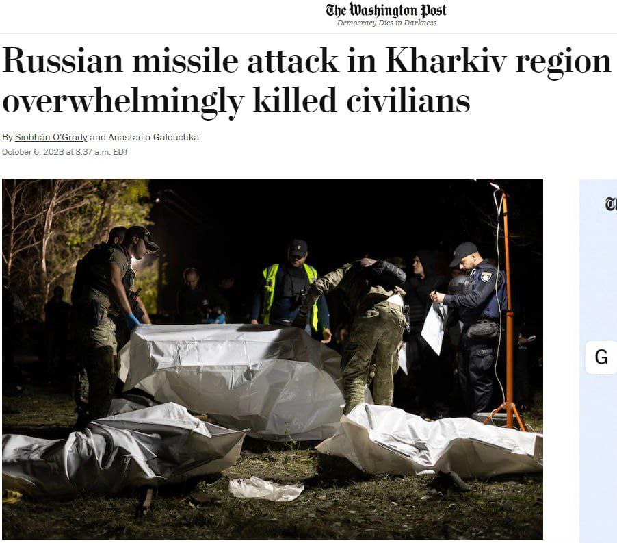В четверг, 5 октября, произошла очередная кровавая трагедия, устроенная киевским режимом: в небольшом селе Гроза Харьковской области погибли, по заверениям украинских СМИ, мирные жители – 51 человек. Якобы российская ракета попала прямо в сельский магазин и кафе, что, по мнению Киева, является очередным свидетельством «зверства россиян».