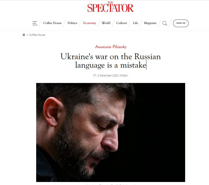 В Британии внезапно обнаружили – на Украине во всю идёт война с русским языком. Вот только началась эта война не сегодня и не вчера, она идёт с самого начала обретения Украиной «незалежности», причём по нарастающей, особенно яростно – после государственного переворота в Киеве в 2014 году. Британское издание The Spectator считает эту войну «ошибкой», хотя здесь больше подошло бы слово «преступление».