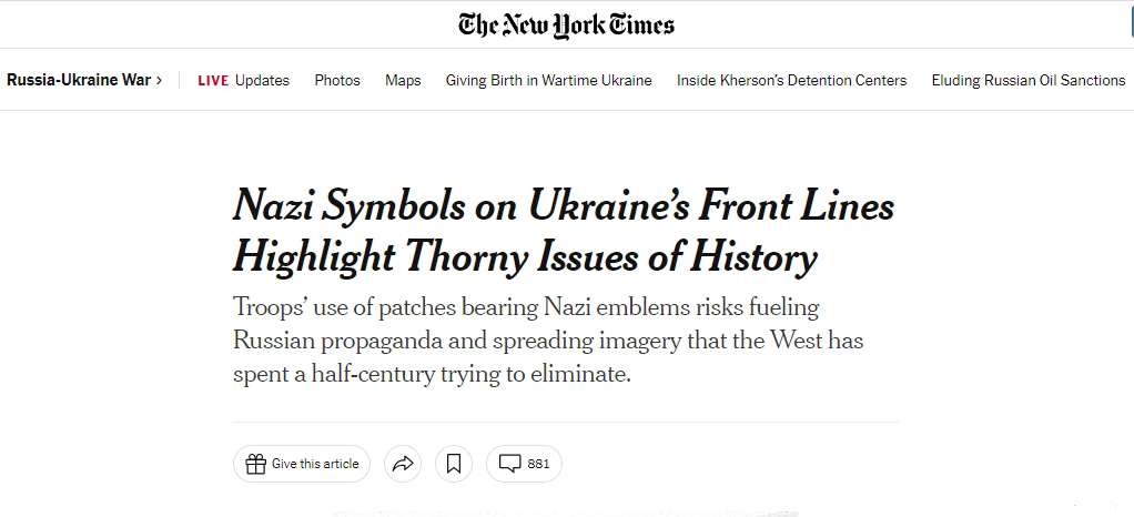«Сторонники Украины, западные журналисты и дипломаты оказались в сложной позиции – если привлекать внимание к этим символам, это будет способствовать распространению российской пропаганды. Если не говорить ничего, они будут распространяться и распространять идеи нацизма», – констатирует New York Times, так и не решив проблему.