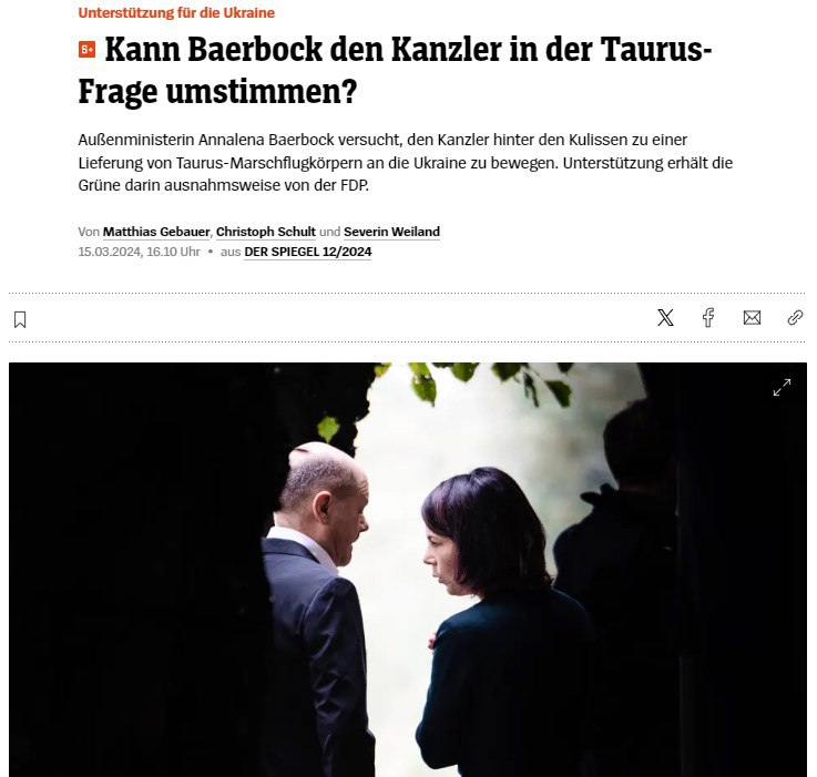 Однако в Германии не все настроены так же, как Шольц. Тот же журнал Der Spiegel в другой статье сообщает, что министр иностранных дел Германии Анналена Бербок не желает мириться с осторожной политикой в отношении передачи ракет Киеву и работает над собственным тайным планом – каким образом можно переправить эти ракеты на Украину, чтобы «не пересечь красные линии» Шольца.