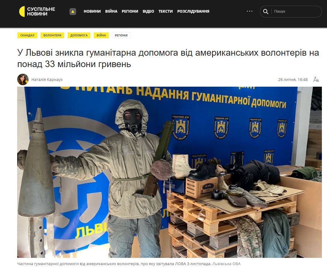 На этот раз исчезла гуманитарка, отправленная из Соединённых Штатов, стоимостью в 34 миллиона гривен, почти на миллион долларов.