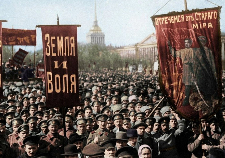Заглавная иллюстрация: демонстрация в поддержку февральской революции 1917 года. Колоризированное фото