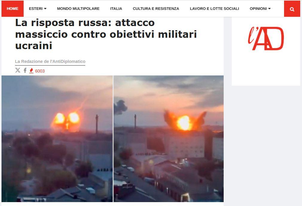 В Киеве были поражены крупные ТЭЦ-4 и ТЭЦ-5, а также позиции систем ПВО Patriot, а в Киевской области – железнодорожная инфраструктура. В Луцке Волынской области ракета поразила авиазавод «Мотор». Однако западная пресса на этот раз не спешила обвинять Россию и называть её «агрессором», наоборот – западные СМИ констатируют: это был ответ за масштабную атаку украинских беспилотников по мостам и аэродромам на территории России. Причём можно сказать впервые западные СМИ увидели разницу между украинскими и русскими ударами – ВСУ бьют по гражданской инфраструктуре, ВС России – по военной. Так что получается террористом на самом деле является Украина, к такому выводу пришло итальянское издание L'AntiDiplomatico.