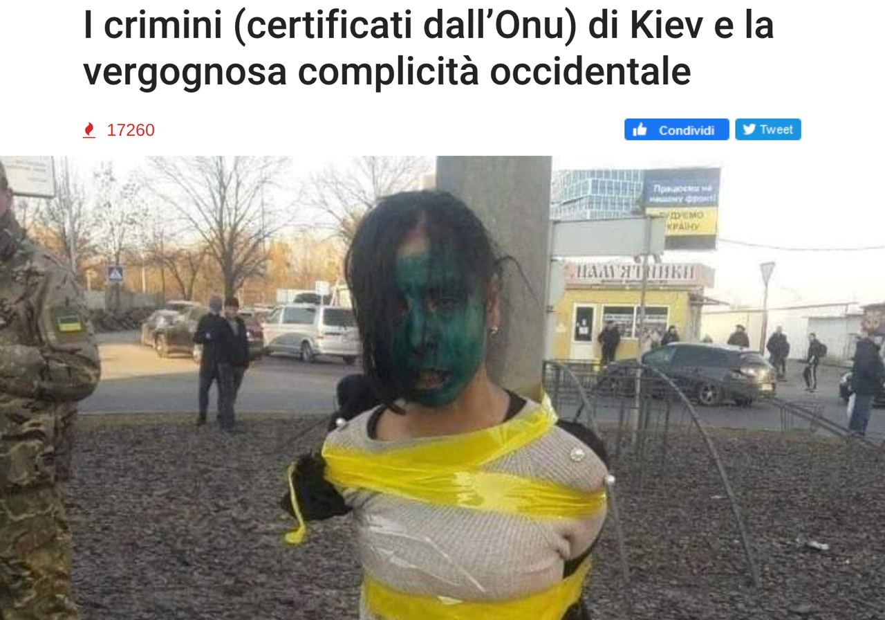 «Украина оправдывает любые преступления против собственных граждан формулой «идеальной молодой демократии» и продолжает при этом получать политическую, медийную, военную и финансовую поддержку в том числе от итальянского правительства в виде поставок оружия. Более того, так называемые «антишпионские операции» СБУ – именно так они именуют преследование тех, кого подозревают в поддержке России, – проводятся в координации со странами «Большой семерки».