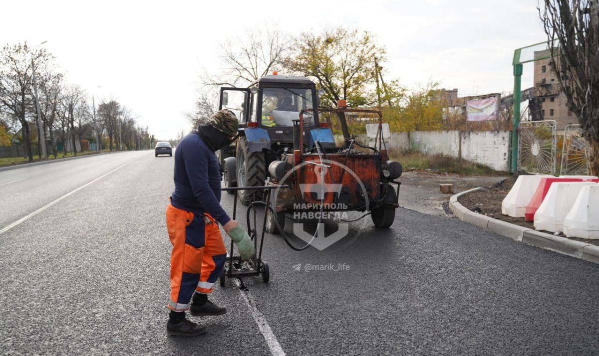 В Мариуполе идёт капитальный ремонт участка трассы в городской черте, этот участок проходит по проспектам Ильича, Металлургов и Ленина, длина его 15 километров.