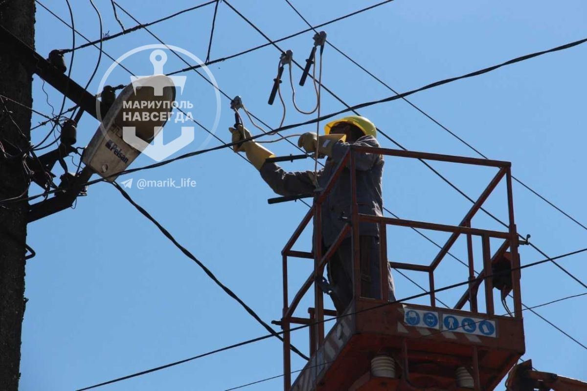 Восстановление электроснабжения в жилом фонде продолжается, работают электрики без выходных, и результат их труда хорошо виден, особенно по вечерам, когда загорается свет в мариупольских окнах.