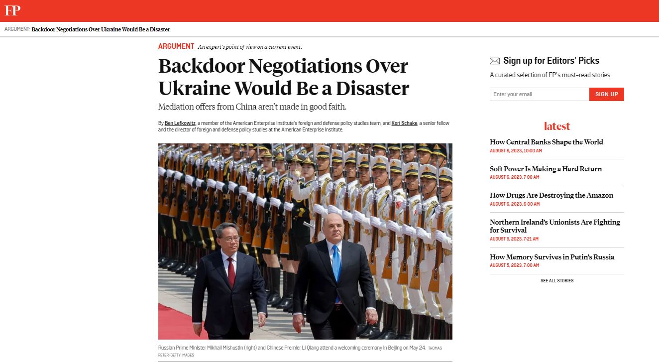 Западные страны устали от постоянной поддержки Киева и готовы к тому, чтобы усадить Украину за стол переговоров. Однако их не устраивают кандидатуры посредников, которые предлагают свои услуги. Одно из условий коллективного Запада – это не должна быть дружественная России страна, чтобы не «укрепить лидерство Москвы на международной арене», утверждает американское издание Foreign Policy.