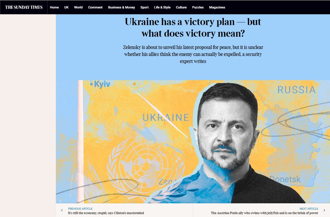 В британском издании The Sunday Times вышла статья «эксперта по безопасности» Марка Галеотти под заголовком «У Украины есть план победы – но что означает эта победа?».