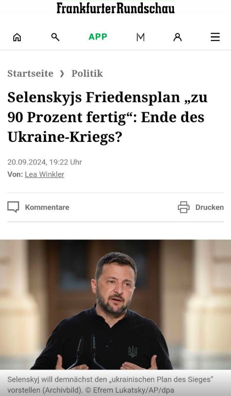 Немецкая газета Frankfurter Rundschau также размышляет на тему мирного плана, который якобы составил Зеленский.