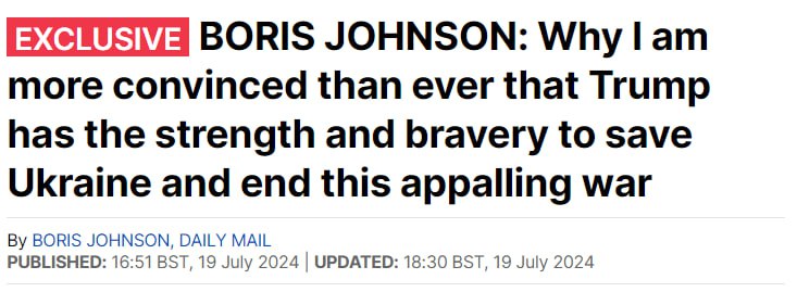 Экс-премьер Британии и «лучший друг» Киева, а по совместительству ещё и активный сторонник военной помощи Украине Борис Джонсон написал колонку для британского издания Daily Mail, в которой уверяет – отныне только Трамп может спасти Украину. А дальше подробно объясняет, каким образом будет происходить это «спасение».