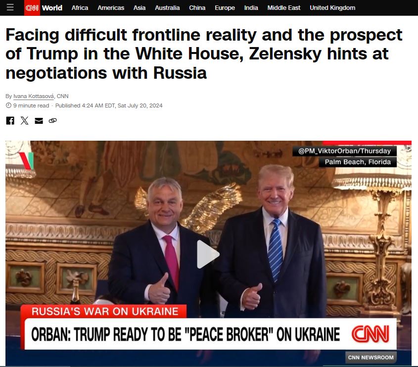 «В ходе продолжающихся военных действий российские силы медленно, но весьма успешно продвигаются на фронте. В то же время за пределами зоны боевых действий возникают вопросы относительно готовности некоторых из ближайших и наиболее важных союзников Украины – в частности, Соединённых Штатов и Германии – продолжать вкладывать ресурсы в поддержку Киева. По словам бывшего посла США на Украине Джона Хербста, смена тона Зеленского, вероятно, была реакцией на события, разворачивающиеся в Соединённых Штатах, где бывший президент Дональд Трамп в понедельник выдвинул кандидатом в вице-президенты ярого критика поддержки Украины Джея Ди Вэнса. В то же время Германия планирует вдвое сократить свою военную помощь Украине в следующем году, предполагая, что Украина сможет удовлетворить большую часть своих военных потребностей за счёт кредитов в размере $50 млрд, полученных от замороженных российских активов», – говорится в статье.