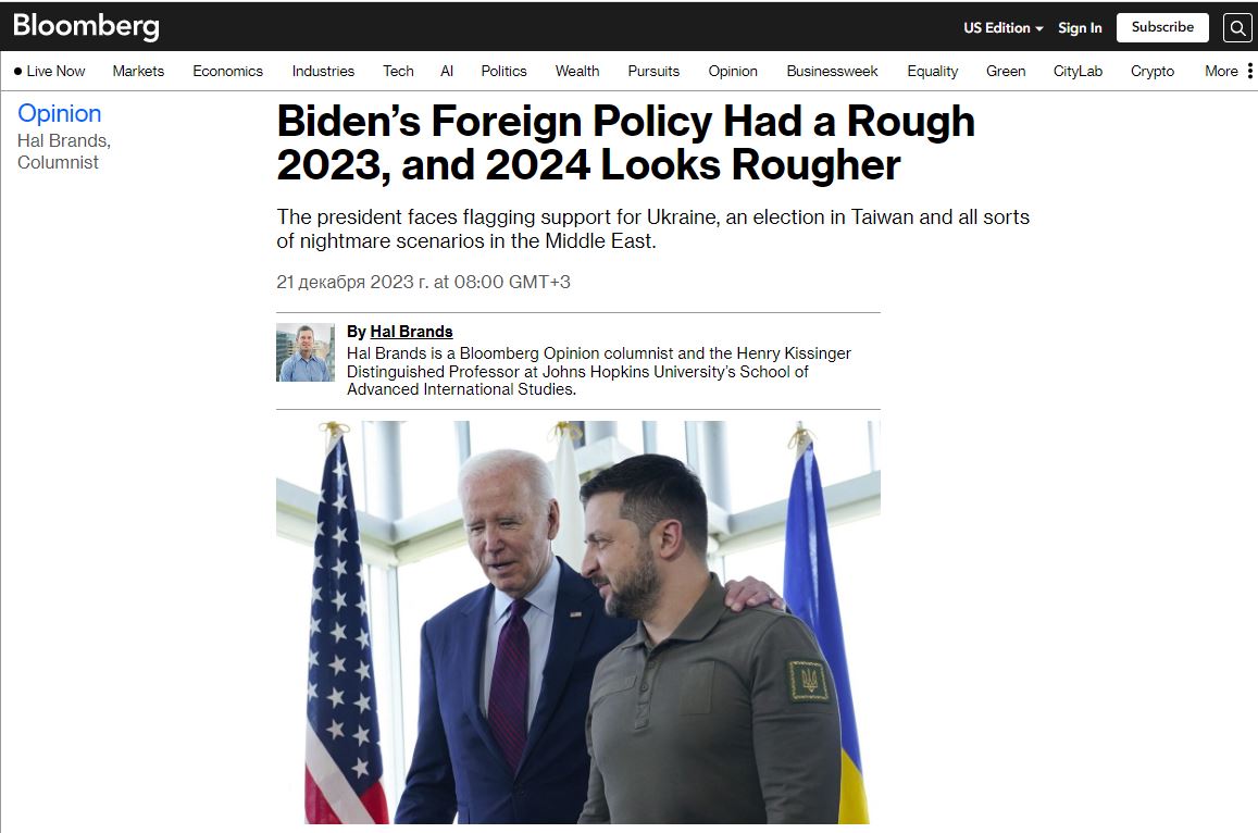 «Следующий год будет ужасным для Украины, поскольку летнее контрнаступление Киева не привело к результатам, а силы ВСУ обескровлены и истощены. Широко разрекламированное контрнаступление закончилось разочарованием. В мировой прессе звучат взаимные обвинения по поводу того, кто виноват в этом провале – робость Украины или алчность Запада», – пишет автор статьи Хэл Брэндс, обозреватель Bloomberg.