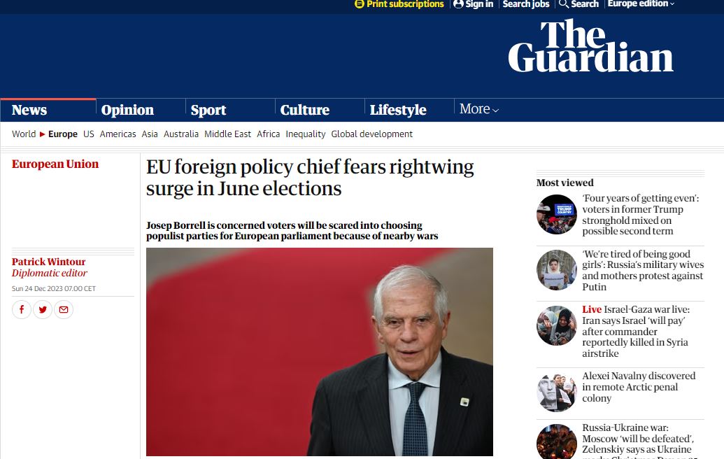 «Возможно, сейчас тот момент, когда мы должны взглянуть на опасность, исходящую от великой державы, которая угрожает нашей демократии, которая угрожает самой Европе, а не только Украине. И если мы быстро не изменим курс, если мы не мобилизуем все наши возможности, это позволит Путину выиграть войну на Украине. Точно так же, если мы не сможем остановить трагедию, которая происходит в Газе, я думаю, нашему проекту будет нанесён очень большой ущерб. Важно то, что мы можем сделать, чтобы не допустить победы России в этой войне. Что мы готовы сделать? Действительно ли мы готовы сделать всё, что потребуется? Это вопрос, который мы должны задать себе сами…» – взывает Боррель к европейской солидарности.