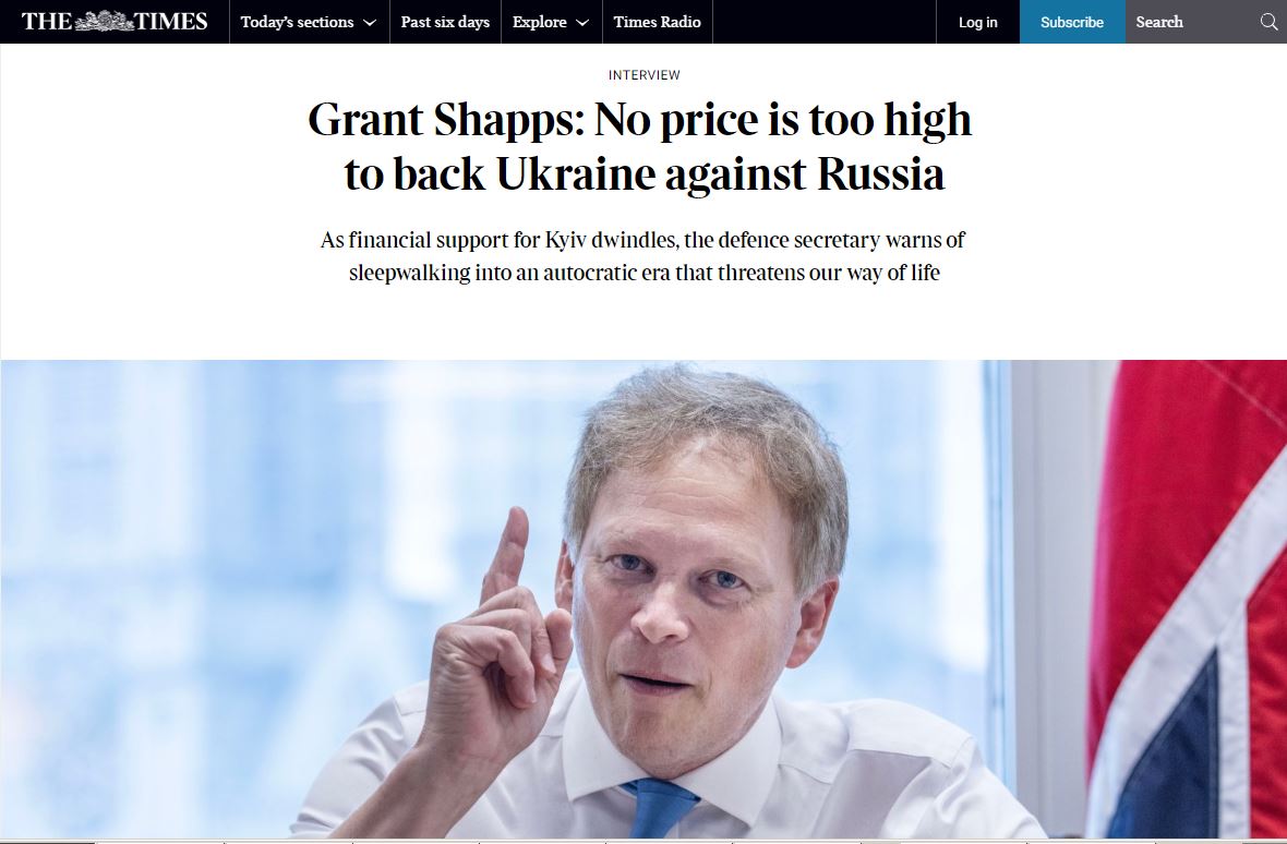 «Мы можем, будто лунатики, войти в мир автократий, если позволим диктаторам одержать победу. Это невероятно опасно. Нет такой цены, которую мы были бы не готовы заплатить сегодня, чтобы не допустить подобной катастрофы завтра. Если мы позволим Путину выиграть эту войну, мы будем страдать от последствий. И последствия будут невероятно тяжёлыми для Европы, для Британии, для всего мира. В случае поражения Украины последствия могут проявиться даже в Индо-Тихоокеанском регионе, что означает возможную операцию Китая на Тайване», – заявляет Шэппс, для пущей убедительности присобачивая к украинскому конфликту ещё и Китай с Тайванем.