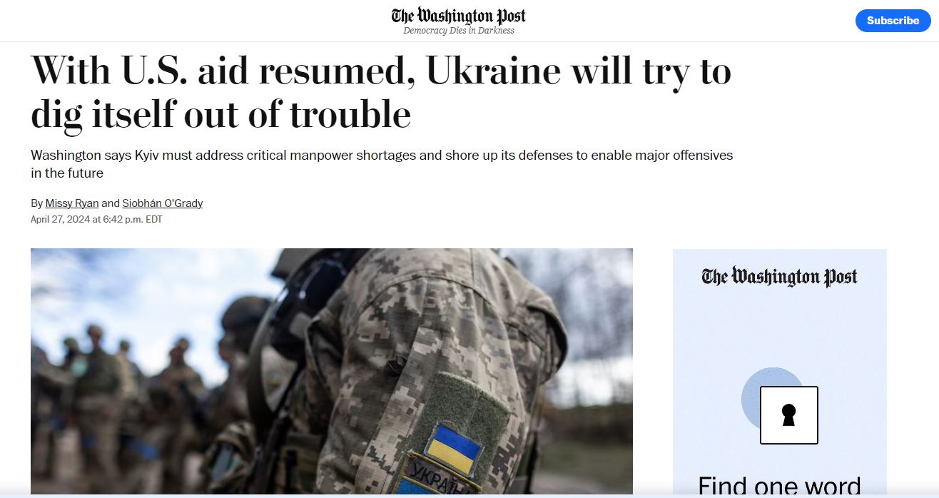 «Не секрет, что после выделения последнего пакета помощи Украине американская администрация подталкивает Киев к проведению мобилизации. По словам одного из чиновников, в США «понимают деликатность» бесед относительно дефицита солдат, но Киев должен найти способ мобилизовать больше сил и вдохновить украинских мужчин идти на передовую»– пишет The Washington Post, не объясняя, каким образом можно вдохновить молодых мужчин идти на верную смерть ради обогащения ненавистного киевского режима.