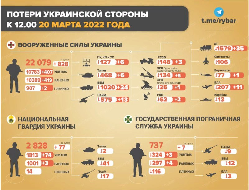 Потери украинской стороны по состоянию на 12.00 20 марта 2022 года.