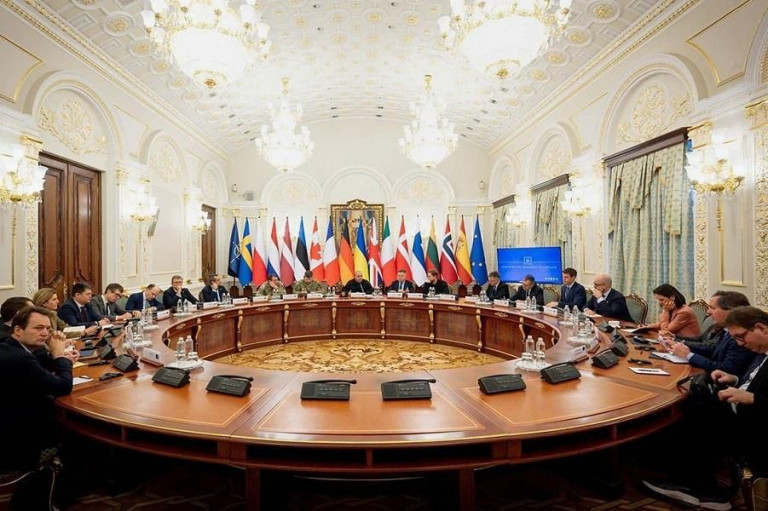 Прибыли они в Киев, чтобы на месте провести заседание «коалиции желающих» – вместе с начальником Генштаба ВСУ генерал-лейтенантом Андреем Гнатовым, первым замглавы МИД Сергеем Кислицей и советником Офиса президента Александром Бевзом. По словам Умерова, это был всего лишь «первый блок» встречи с партнёрами, во время которого были подготовлены рамочные документы, рассмотрены вопросы гарантий безопасности и сделана попытка определить последовательность дальнейших совместных шагов.