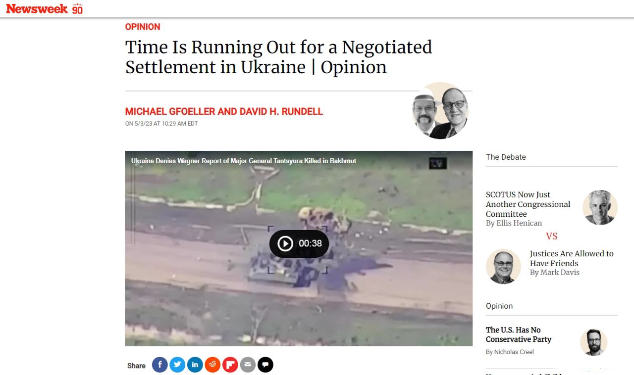 «Сегодня Украине срочно нужен мир для того, чтобы попытаться восстановить экономику. Экономика для Киева должна значить больше, чем победа, потому что успех запланированного контрнаступления Украины остаётся под большим вопросом, а поражение Киева существенно ослабит его позиции на переговорах. При том, что безоговорочное обещание НАТО поддерживать Украину «столько, сколько потребуется» в политическом смысле абсолютно бесперспективно. Этот конфликт финансирует вовсе не некий абстрактный субъект под названием «НАТО», а западные налогоплательщики – реальные люди, чьи доходы и качество жизни сейчас заметно страдают», – пишет американский еженедельный журнал Newsweek.