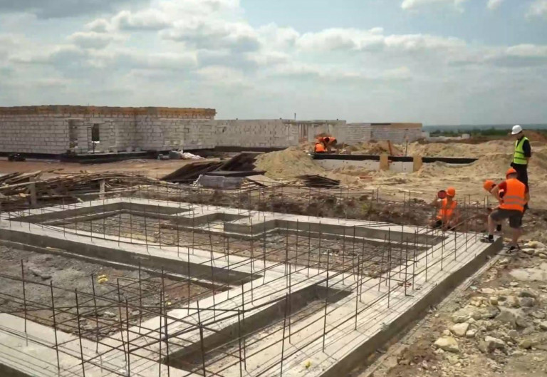 Несмотря на праздничные и выходные дни, тверской подрядчик продолжает работы по строительству спортивного зала в школе №19 Бердянска.
