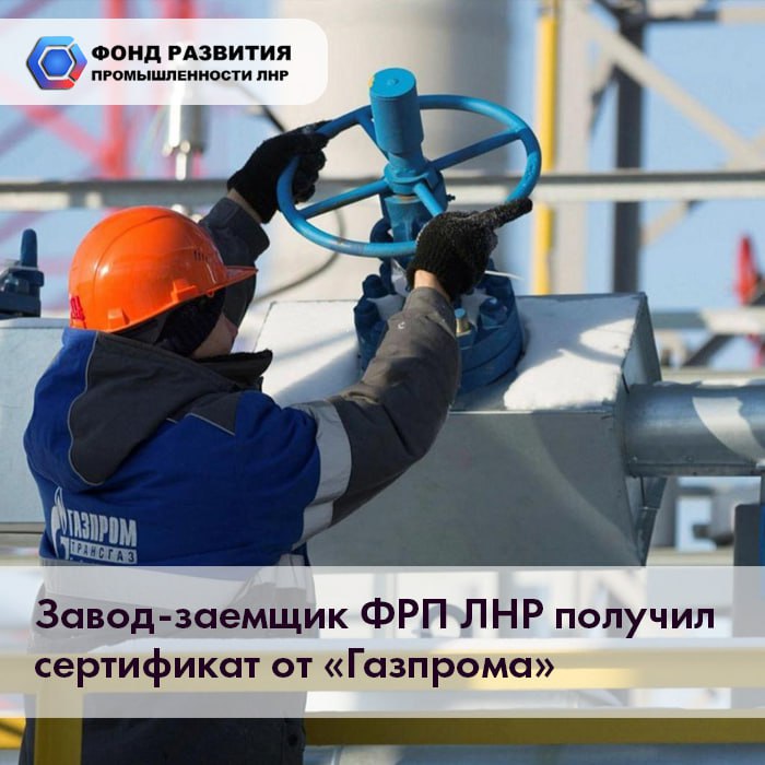 Завод-заёмщик ФРП ЛНР получил сертификат соответствия от «Газпрома», пишет Телеграм-канал Лента новостей Луганска.