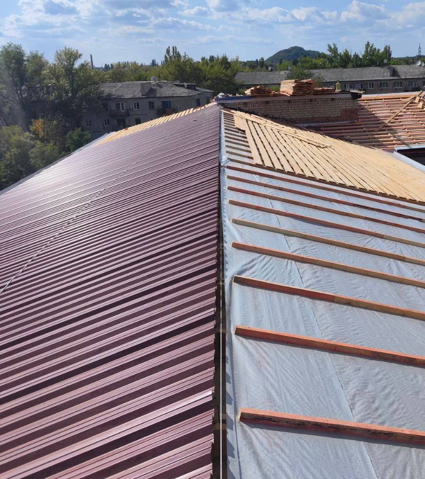 На объекте установлено 183 оконных конструкции и 10 комплектов дверей, завершена установка стропильной системы. Специалисты приступили к монтажу кровельного покрытия.