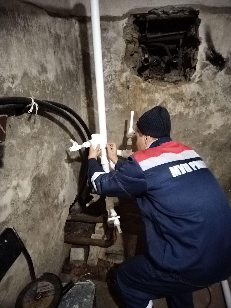 Специалисты начали монтаж трубопровода в подвальном помещении. Они установили циркуляционный насос в систему отопления, подвели трубопровод к батареям и поставили воздушные краны на радиаторах.