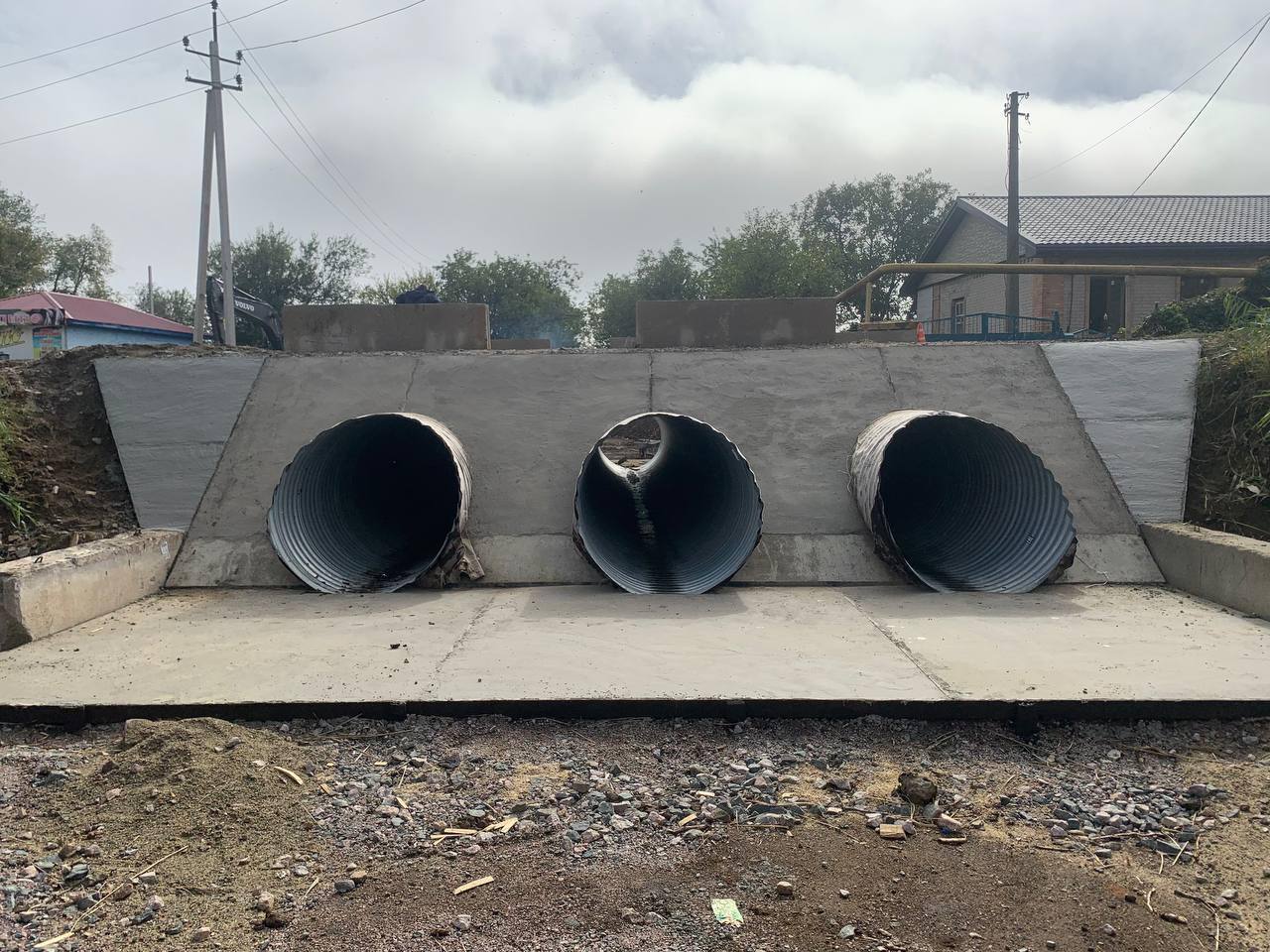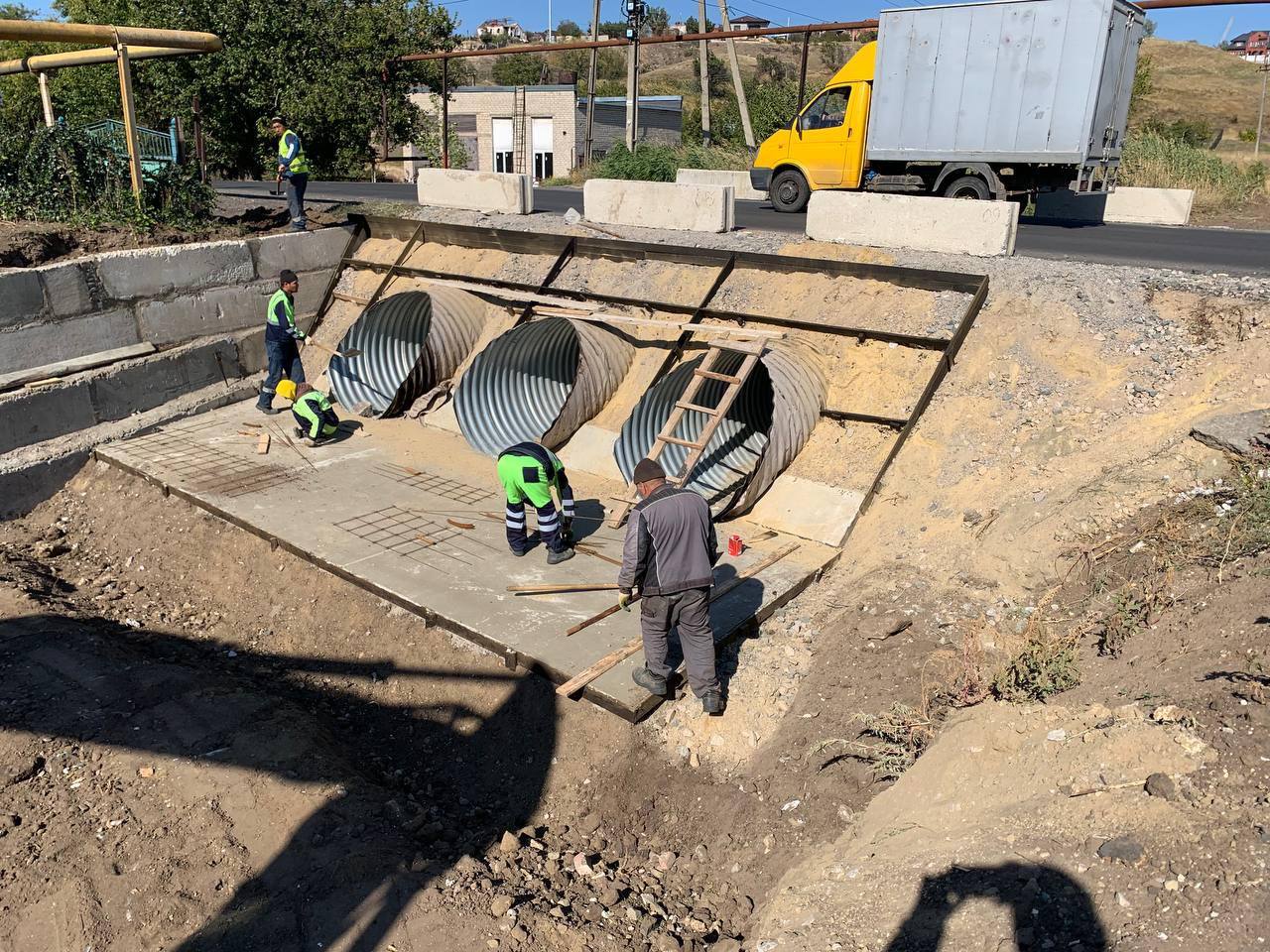 Сейчас ремонтники устраивают укрепления выходного оголовка водопропускной трубы на улице Советской в селе Виноградное.